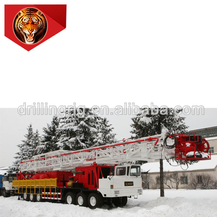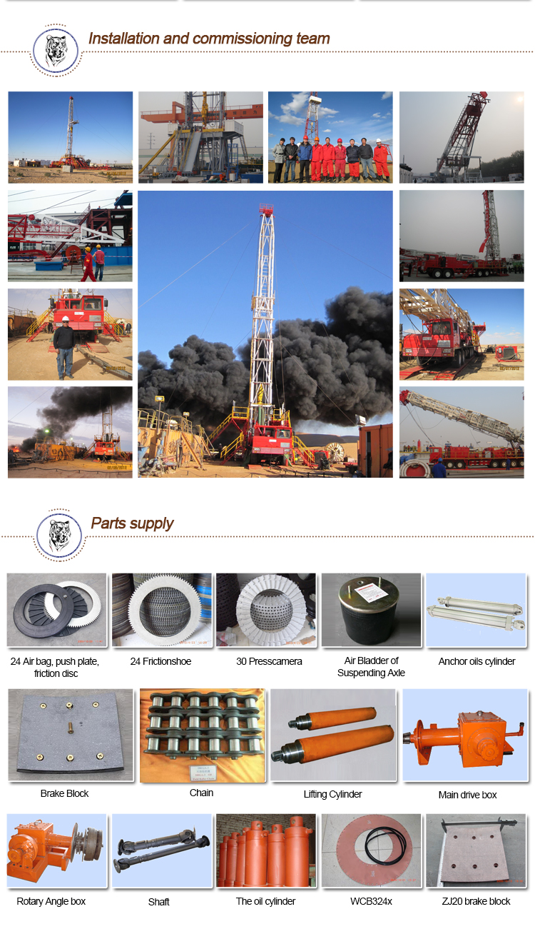 1.With an optimum structure and high-level integration, the whole rig requires a small working space. 2.The heavy-duty self-propelled chassis are available in various drive ways 8×6, 10×8, 12×8, 14×8, 14×12, with hydraulic steering system which ensures good drilling accessibility, cruise capability and lateral stability, and also the working reliability of every component. 3.The matching between the engine and the transmission box ensures high driving efficiency and high working reliability. The drawworks and rotary tables can be driven by motors. 4.The drilling rig main brake can be band brake or hydraulic disc brake, and the auxiliary brake can be water cooling thrust plate pneumatic brake or water brake. 5.The rotary table transmission box provides forward-reverse shift, which is suitable for DP make up and break out operations, and is equipped with a reverse torque release device that ensures the DP deformation force releases safely. 6. The mast, which is front-open and double-sectioned with an inclination angle or with an erective double-section, can be raised up or laid down and telescoped hydraulically. 7.The drill floor is twin-body telescopic type or parallelogram structure, which is convenient for hoisting and transportation. The dimension and height of the drill floor can be designed based on customers’ requirements. 8.The configurations of the solid control system, well control system, high-pressure manifold system, generator house, engine pump house, doghouse and other auxiliary equipment can meet the different requirements of the end-users.