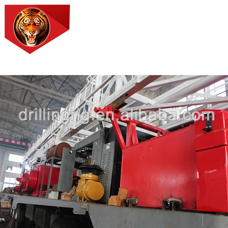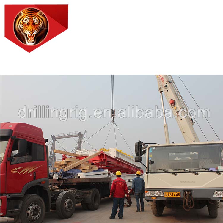 The trailer-mounted drilling rig is divided into mechanical drive, electrical drive and trailer-mounted drilling rig without ground anchor, of which the main characteristics are as follows: The drawworks of the trailer-mounted mechanical drive is driven by diesel engine and hydraulic transmission box, which has a proper matching and high transmission efficiency. 1.For the electrical drive trailer-mounted rig, the drawworks and rotary table are driven by electrical motors,and the driving control is realized by a digital SCR/VFD system 2.These drilling rigs have the following advantages: reasonable structure design, high-integration configuration and they only require a small working space. 3.The main unit, drill floor, DP cat walk, generator set, pump set, solid control system, and auxiliary system of this kind rig can all be transported and moved by trailers. 4.The drawworks is a double--drum type. The hydraulic disc brake is used as the main brake and water-cooling thrust plate pneumatic brake or FDWS brake is used as the auxiliary brake. 5.The mast is front-open type, which has a twin-body structure with an inclination angle mode or erective mode and can be raised or laid down and telescoped hydraulically. 6.The drill floor has a two-section telescopic structure or parallelogram structure for easy transportation and lifting. 7.The mast of the drilling rig without ground anchor is front-open, triple-section and front-inclination type with a height of 154ft, and it can perform triple-setback (columns) round-trip operations. The guy line is fixed on the drilling rig body, which saves disassembly and assembly time and reduces labor intensity.